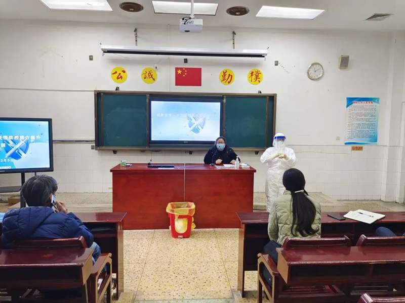 會上全體老師認真學習觀摩,并積極進行演練,紛紛表示此次培訓大大提高了老師們的防控隔離意識及應對疫情變化的防控能力,同時深感防疫工作人員的工作艱辛和不易,以后將更加支持和重視此項工作。