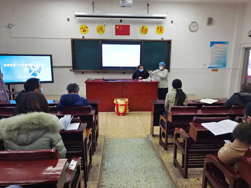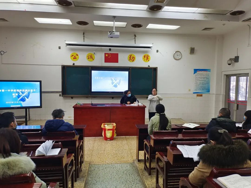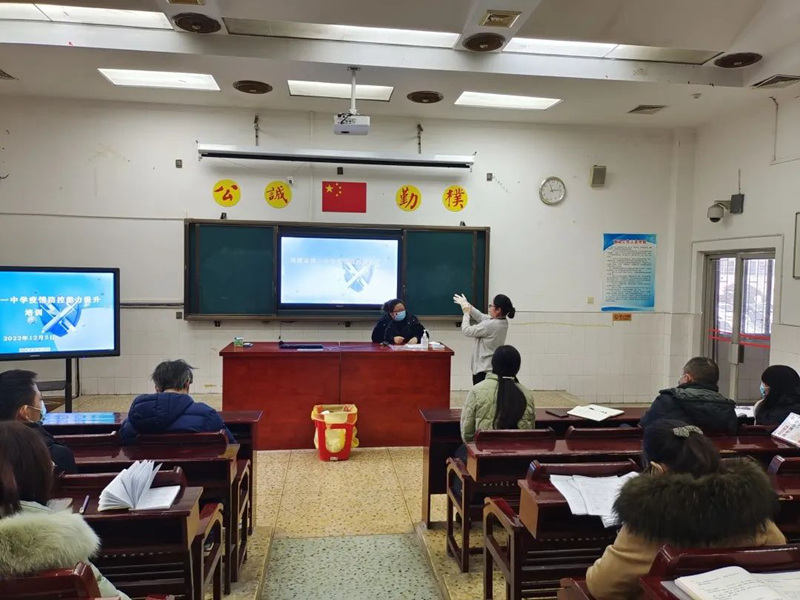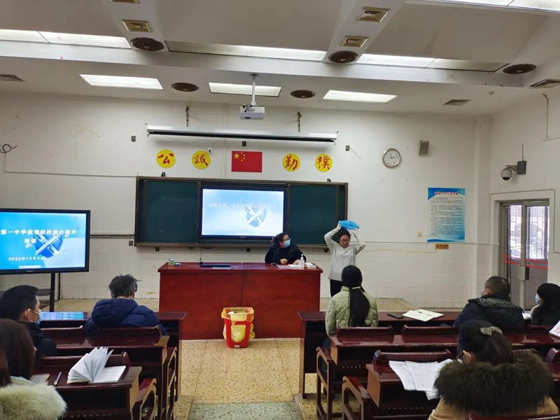 根據上級防疫部門的要求,為更好地應對疫情的變化,我校組織全體班主任及部分任課老師于12月5日上午10點15分在多媒體一室召開穿脫防護服培訓會議。