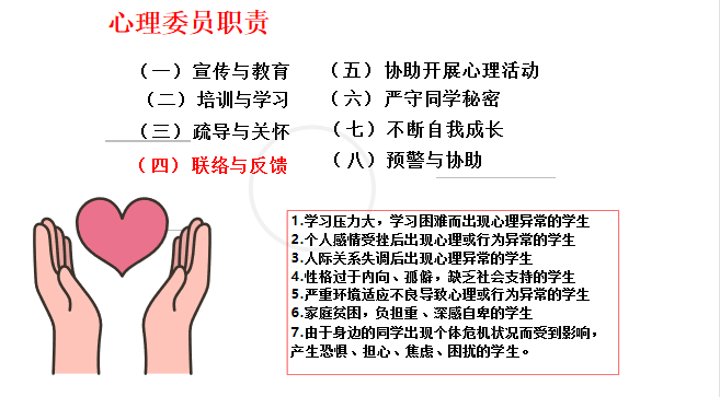 他們語言自然流暢,儀態端莊大方,表現自信得體,展現出了各位心理委員的經驗和能力,以及為同學們服務的強烈意愿。